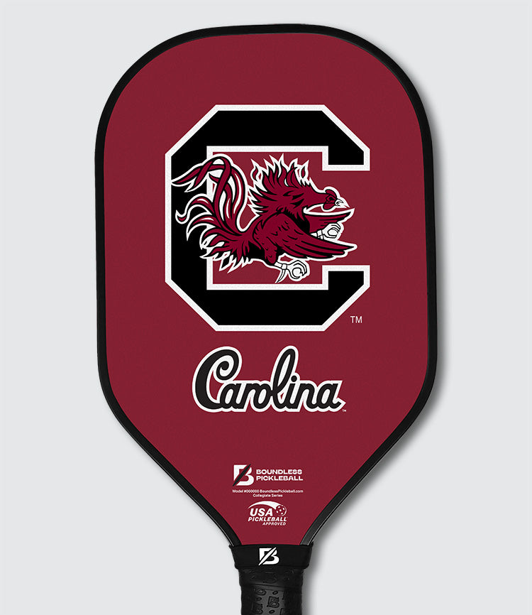 Boundless presents the University of South Carolina pickleball paddle. Whether you're a current athlete, alumni or diehard fan of USC, this is the perfect paddle to represent on the courts. This paddle is approved for all tournament play and is built with the highest quality materials on the market.